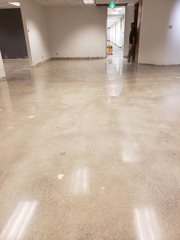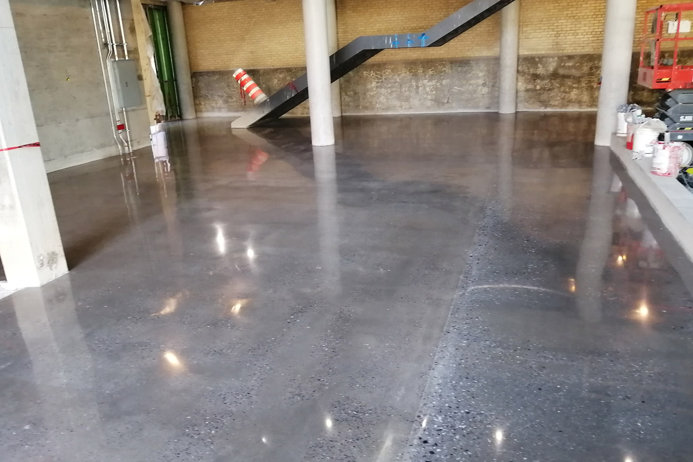 Nous recommandons généralement l’époxy ou le béton poli pour le revêtement de plancher de bureaux commerciaux. Les deux matériaux sont idéaux pour leur facilité d’entretien, leurs propriétés antidérapantes et leur résistance à un trafic lourd et élevé. L’époxy offre une surface étanche, tandis que le béton poli possède un excellent rapport qualité-prix.